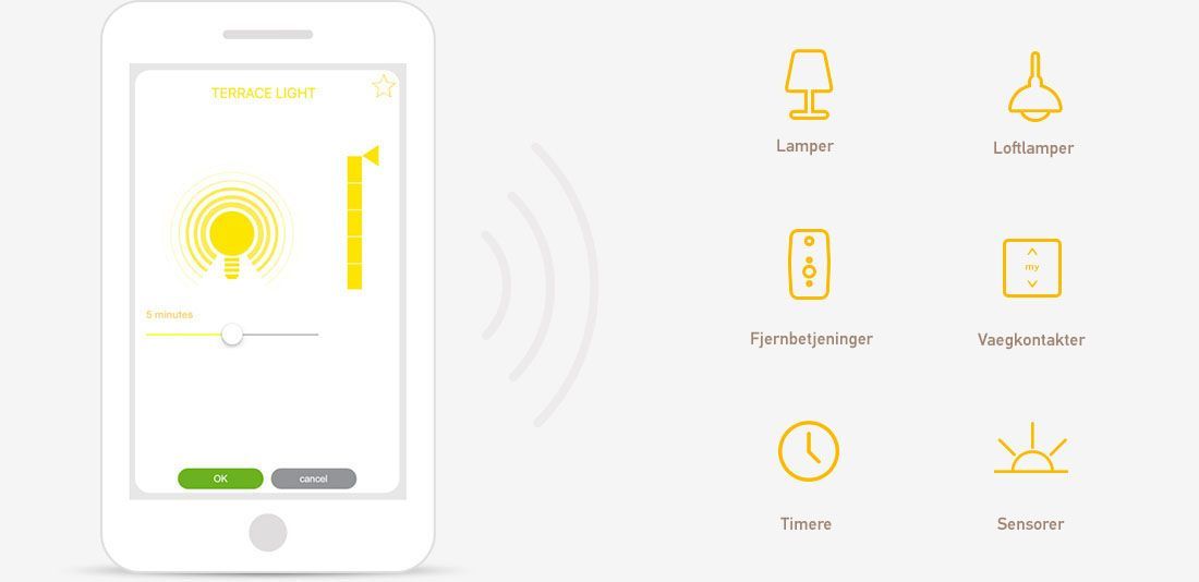 Betjen belysningen med din smartphone eller vælg en af vores vægkontakter eller fjernbetjeninger.