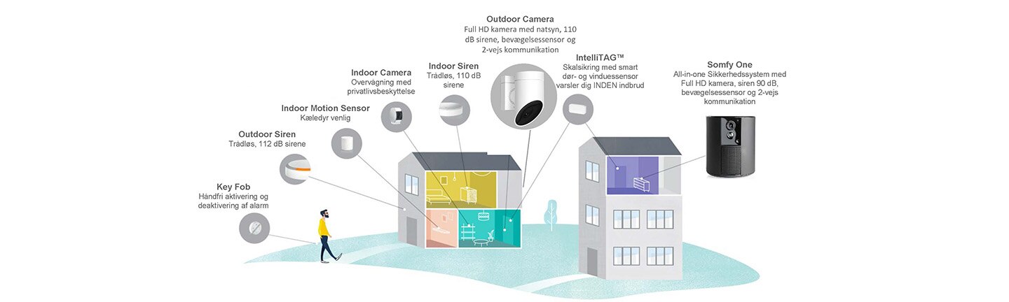 Somfy Protect er mere end blot et sikkerhedssystem. Det er et komplet økosystem af tilsluttede smart produkter, som du kan mixe og matche for at skabe den ideelle løsning til dit hjem og din families behov. Let at installere og på blot 10 minutter. Herefter kan du holde øje med og styre alt direkte fra din smartphone, fra ydersiden af dit hjem, til det indendørs miljø hvor dine børn og kæledyr leger.