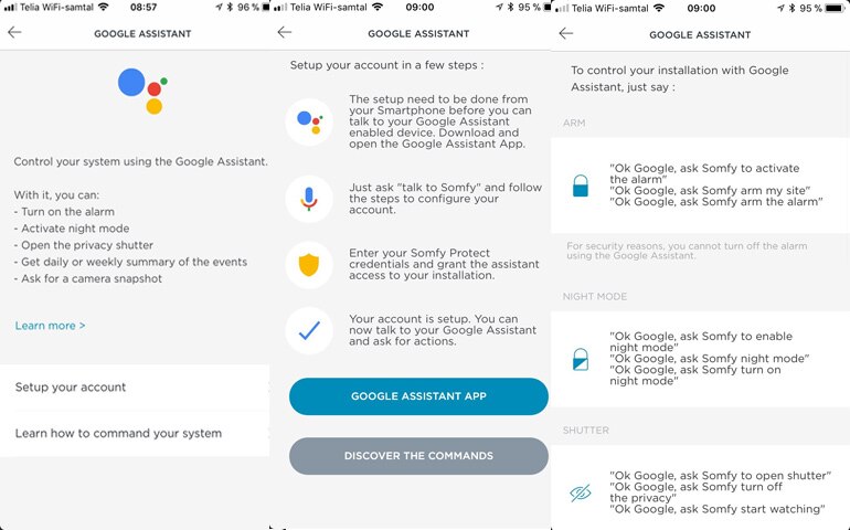 Via Somfy Protect finder du klare instruktioner om, hvordan du kan parre enhederne. Bemærk at du skal indstille din Google Assistant til at forstå både Dansk og Engelsk inden du går i gang. Når du er færdig, vil du f.eks. kunne spørge din Google Home om følgende: