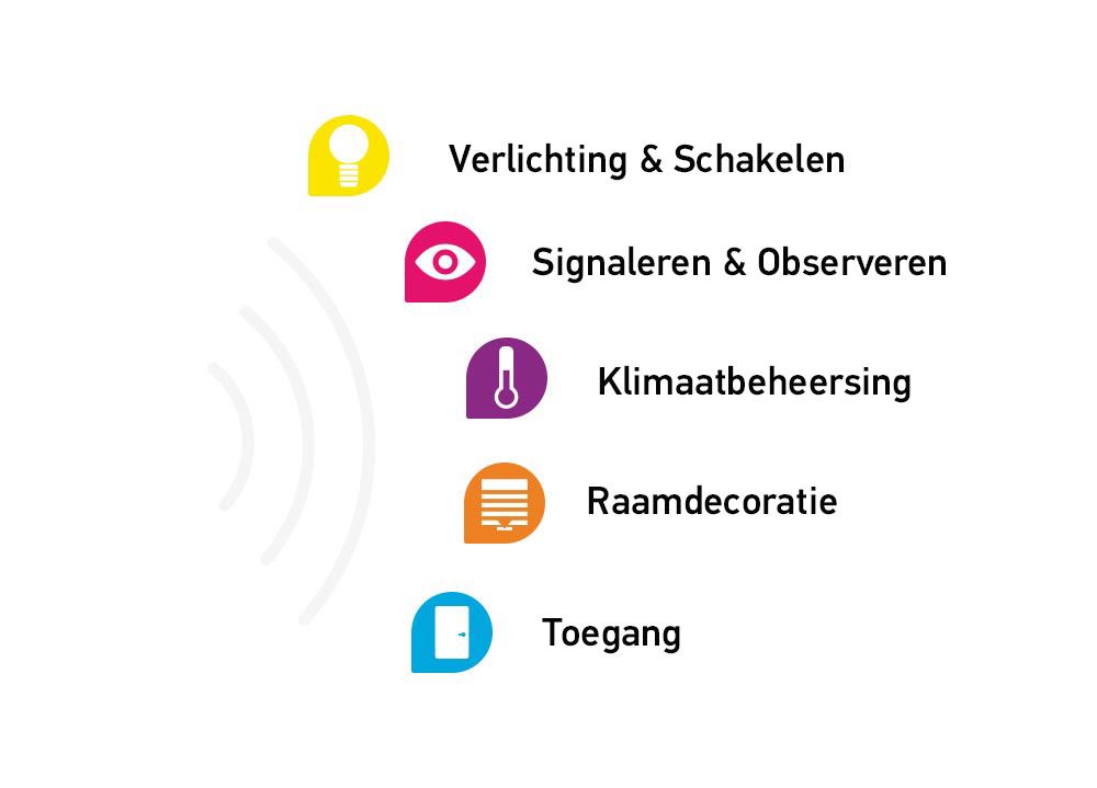 Bedien en monitor (rol)gordijnen, verlichting en elektrische apparaten, zonwering, rolluiken, verwarming, garagedeur en poort met Somfy. Profiteer van onze expertise en innovaties en geniet van een comfortabel huis dat zich automatisch aanpast aan je levensstijl.