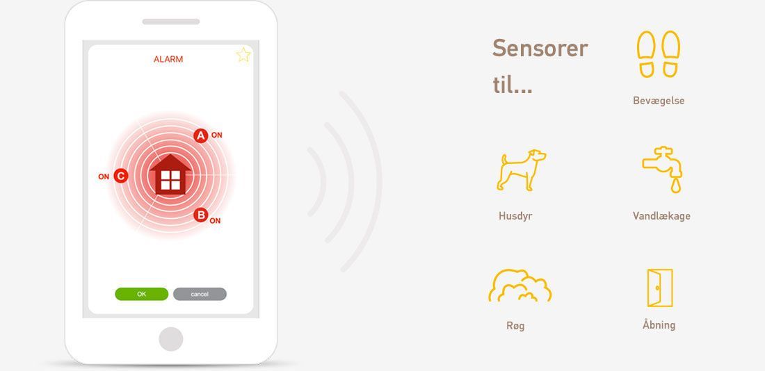Brug åbningssensorer på døre og vinduer til at varsle dig om indbrudsforsøg.
